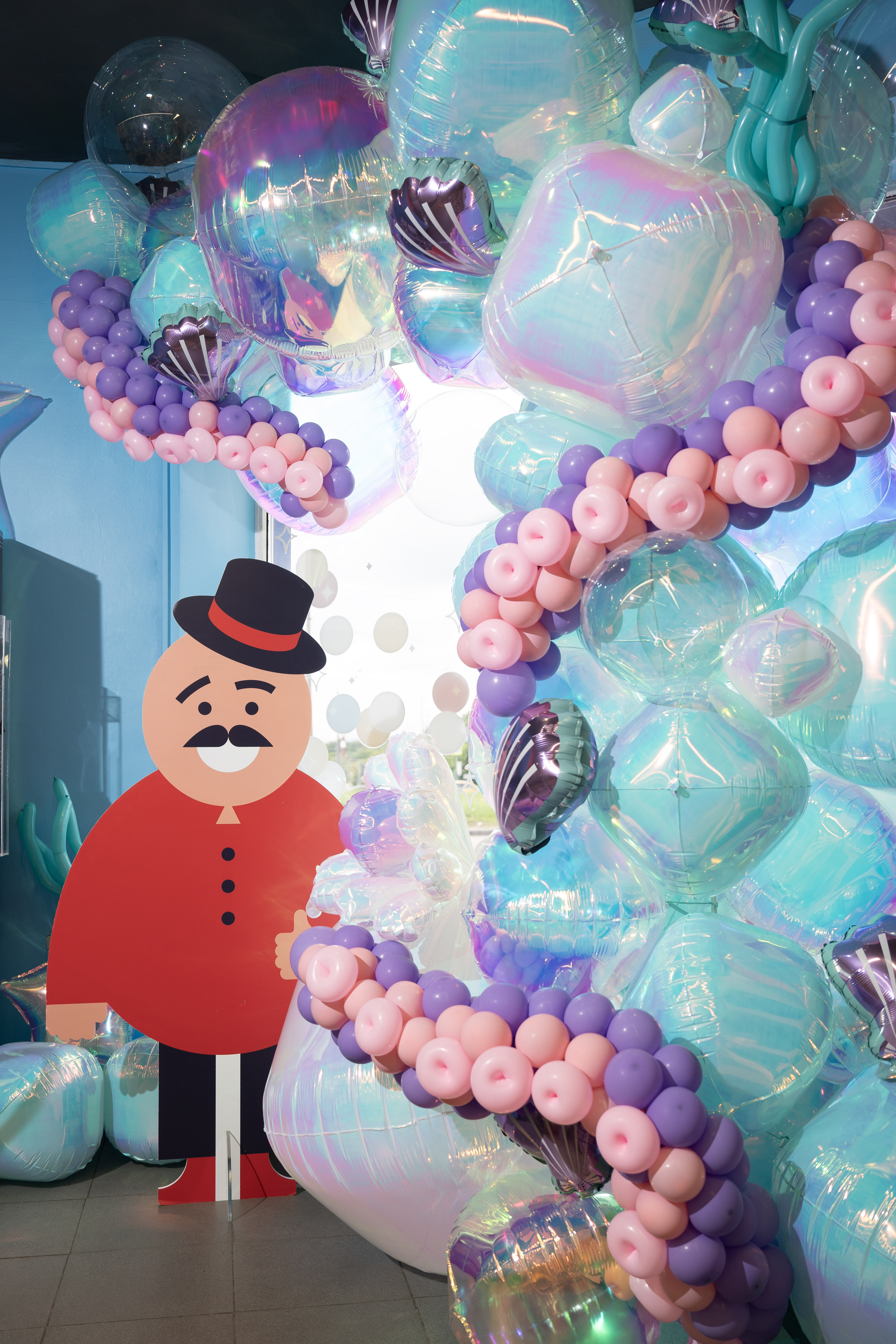 Воздушная фотозона в морском стиле создаёт атмосферу лёгкости, фантазии и настоящего подводного волшебства. Перламутровые и прозрачные сферы с нежным переливом, эффектные щупальца осьминога погружают нас в морские глубины.